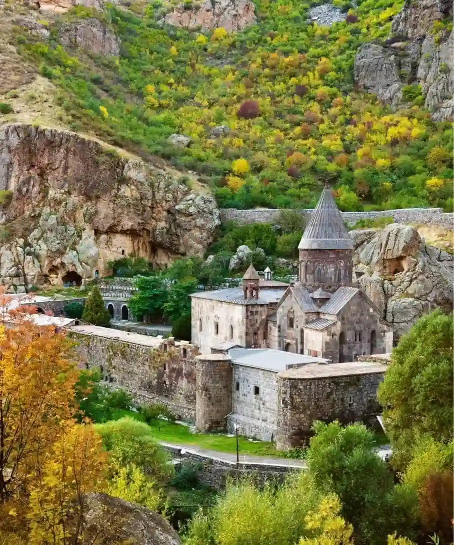 Continue to marvel at the awe-inspiring Garni Canyon, known as the "Symphony of Stones," where nature's beauty unfolds in breathtaking formations. Conclude your exploration with a visit to the picturesque Geghard monastery complex, a 13th-century wonder partially carved into the rock and designated as a UNESCO World Cultural Heritage site.